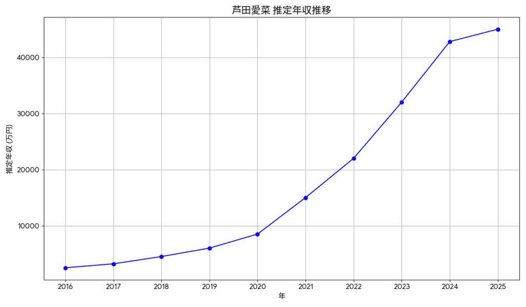 芦田愛菜 年収推移表 (2016年〜2025年推定)