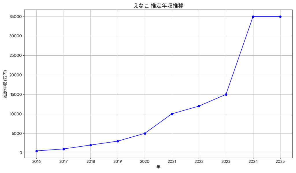 えなこ 年収推移サマリー (2016年〜2025年推定)