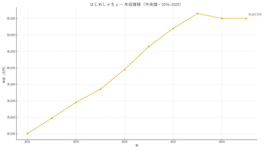 | 2016 | 20,000 | チャンネル拡大期、収益基盤の確立 |