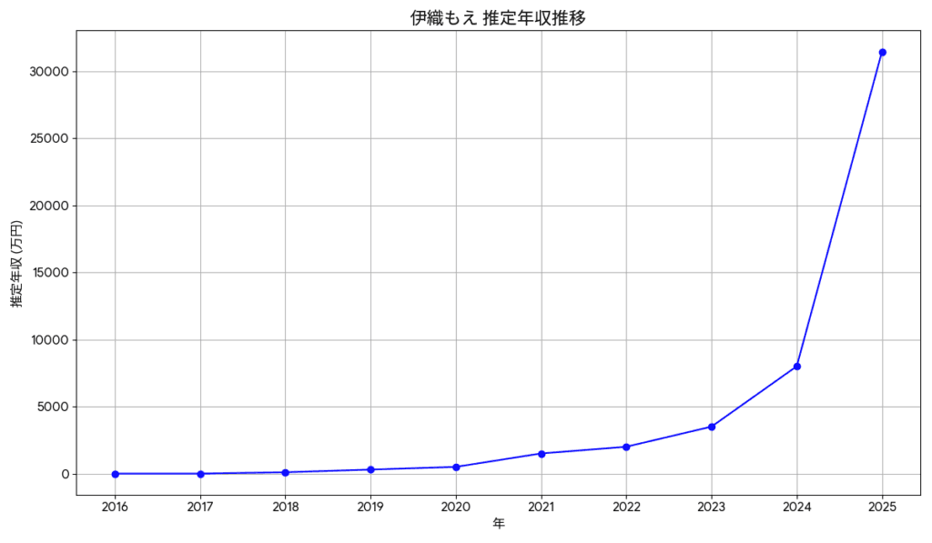 伊織もえ 年収推移表 (2016年〜2025年推定)