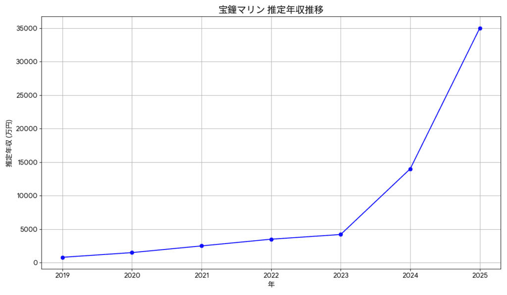 各収入源別推定売上推移 (202宝鐘マリン 年収推移サマリー (2019年〜2025年推定)