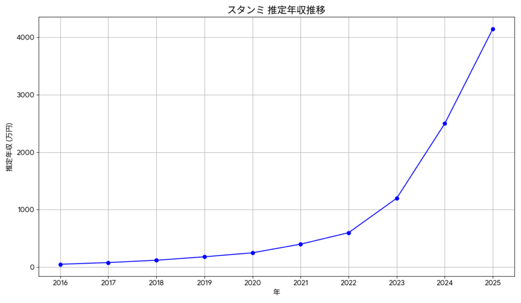 スタンミ 年収推移サマリー (2016年〜2025年推定)