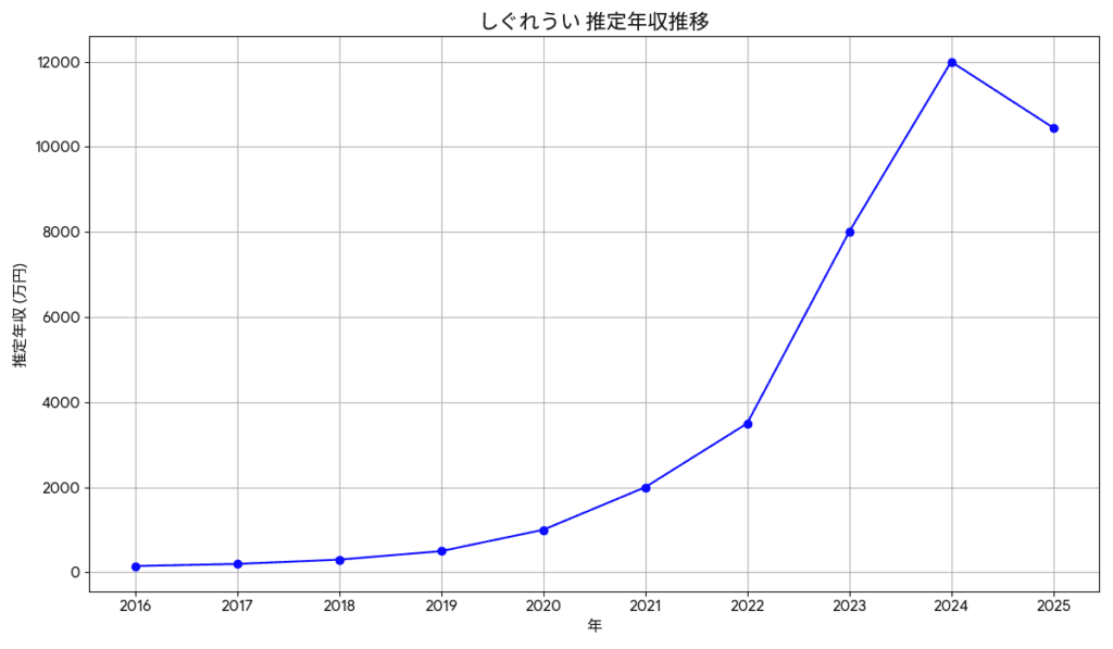 しぐれうい 年収推移サマリー (2016年〜2025年推定)