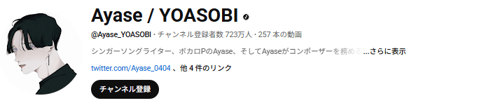 - チャンネル「Ayase / YOASOBI」の総再生回数は3億6,696万回超(2024年1月時点)です。